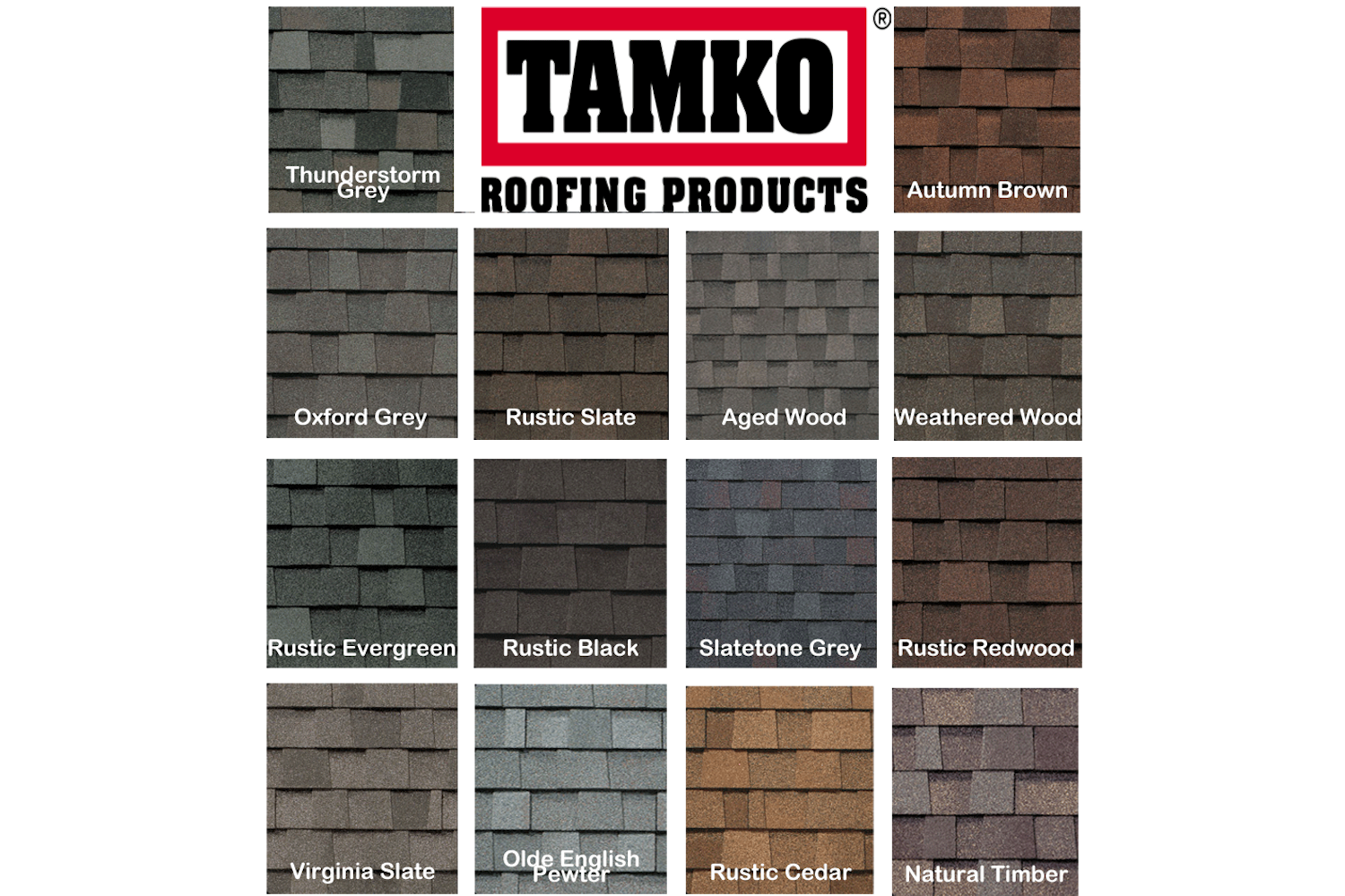 Whether architectural shingles or 3 tab shingles we have them are ready to protect your roof. Shadowy grey, earthy green, rustic red or woodsy brown, TAMKO has the perfect color for your project.
